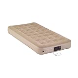 Other details include Coleman's exclusive PVC formula, which is 15 percent more puncture-resistant than the leading competition; a sturdy ComfortSmart coil design that adds more strength, firmness, and comfort than standard beam construction; and a soft plush top for extra comfort. The twin Quickbed measures 74 by 9 by 40 inches (W x H x D) when fully inflated and supports up to 600 pounds. It also includes a carrying bag for easy transport.